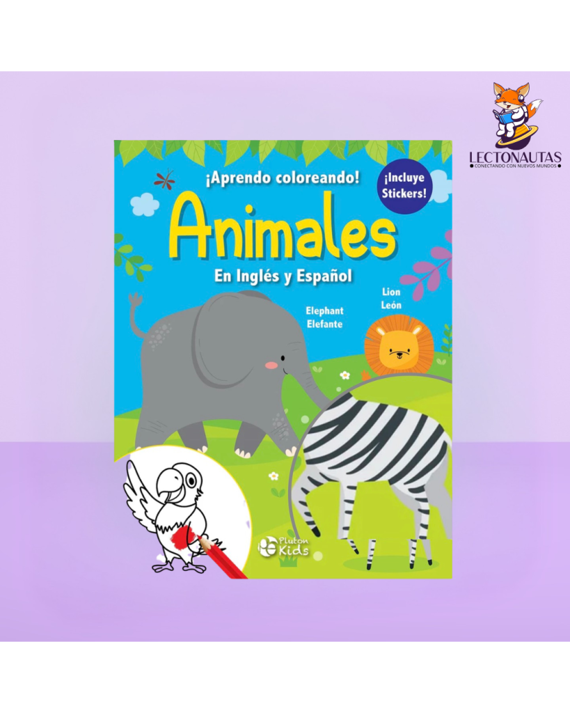 Un libro para aprender jugando. A través del coloreado y la observación, niñas y niños descubren animales mientras incorporan vocabulario en inglés y español de forma simple, entretenida y natural.
