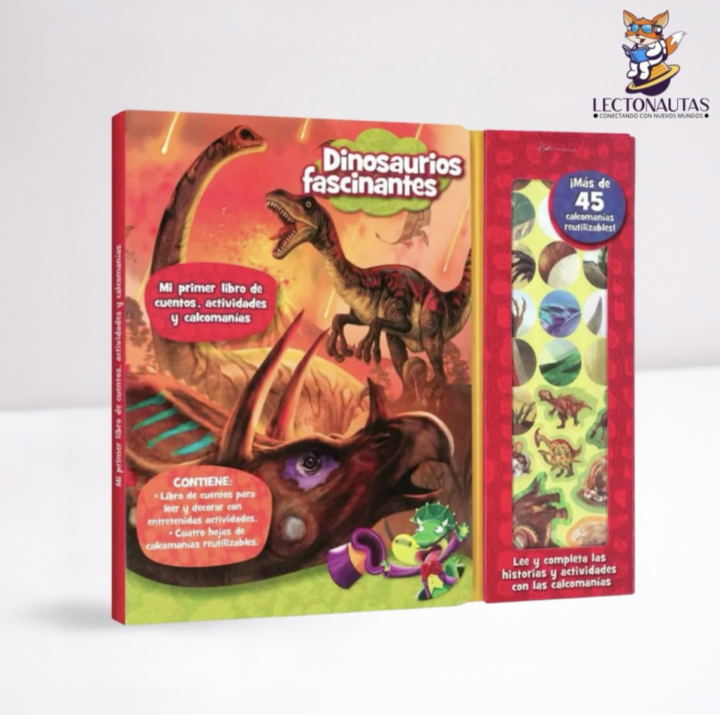 Dinosaurios fascinantes es una propuesta pensada para acompañar a los primeros lectores en su acercamiento al mundo de los dinosaurios a través del juego, la lectura y la exploración visual. El libro integra relatos breves, actividades lúdicas y calcomanías reutilizables que permiten interactuar directamente con las páginas, transformando la lectura en una experiencia activa.