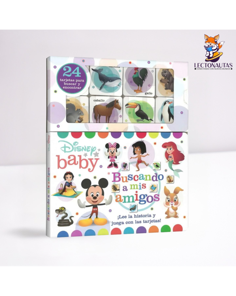 Disney Baby – Buscando a mis amigos es un libro interactivo pensado para que niñas y niños participen activamente en la lectura. A través de una historia simple y entretenida, los pequeños lectores deberán buscar distintos personajes y animales utilizando las 24 tarjetas incluidas, transformando la lectura en un juego de descubrimiento.
